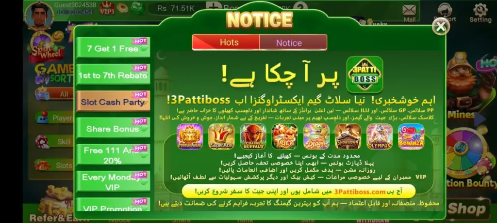 Teen Patti Boss is a newer yet rapidly growing platform famous for its real-money earning features and commission programs. It has gained attention for its daily bonuses, referral earnings, and fast withdrawals.